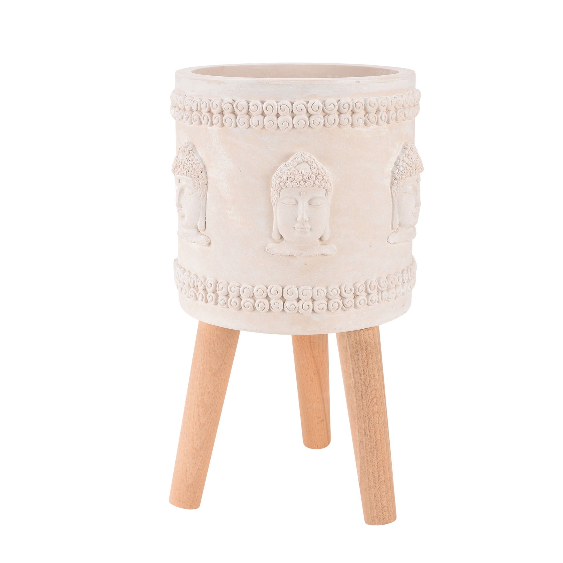 Light Grey Buddha Planter With Wooden Legs 40 5cm Widdop And Co